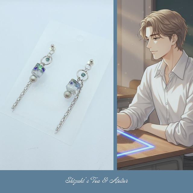 【12月誕生石:ブルージルコン】Moonlit Blue Cube (イヤリング/ピアス/イヤーカフ)082