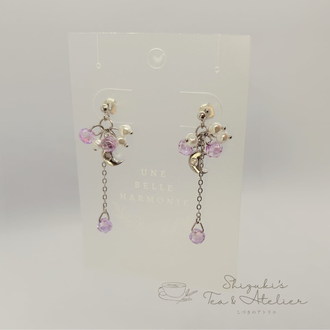 ジルコニアの輝きと淡いラベンダーのガラスビーズが