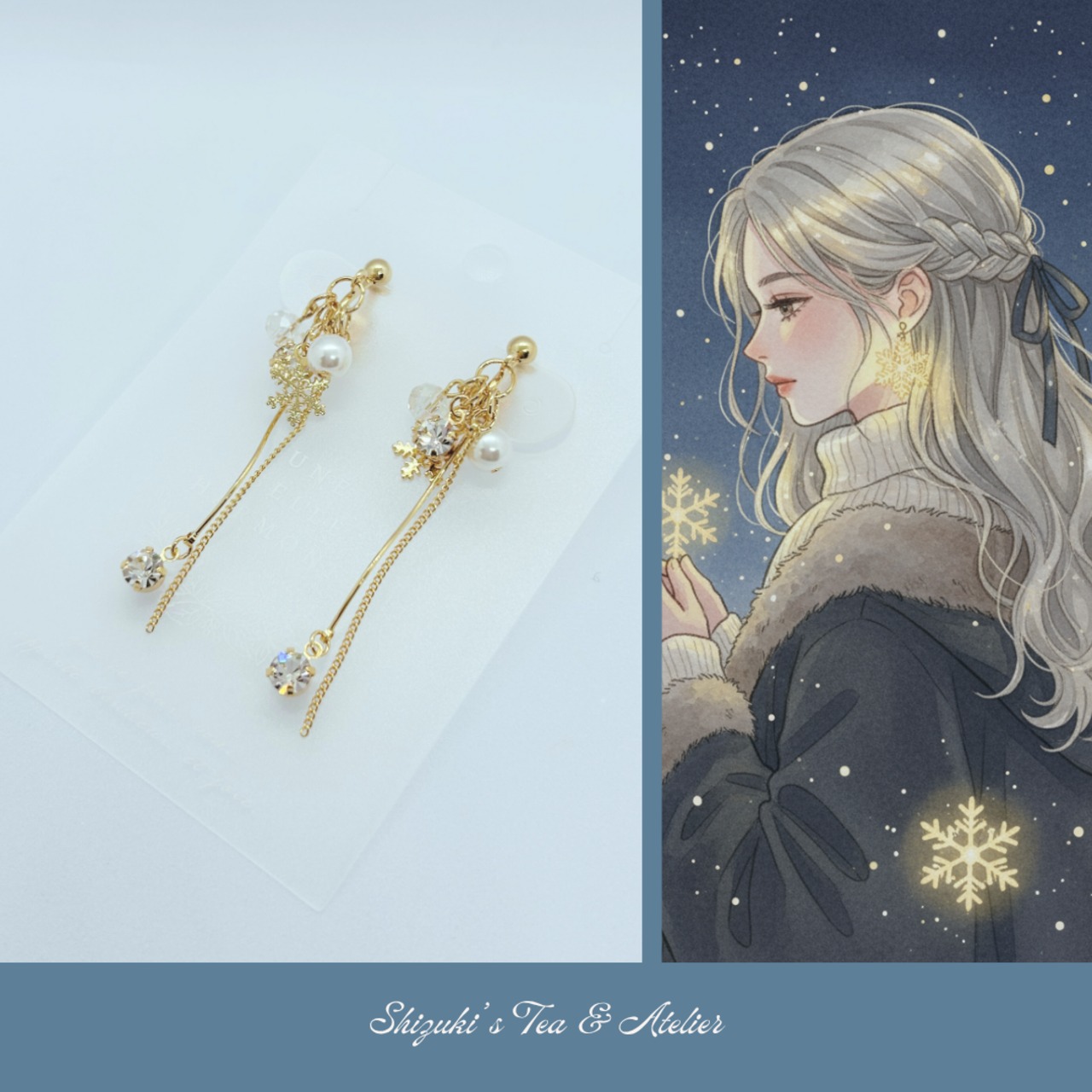 パールの柔らかさを添えた冬のランプのようなイヤーアクセサリー。