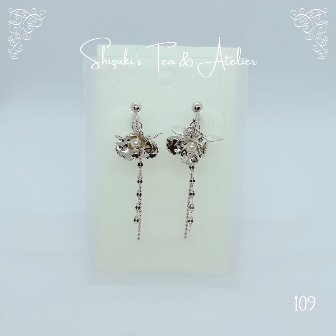 繊細なチェーンとパールのしずくが、耳元で小さく音を奏でるように揺れます。