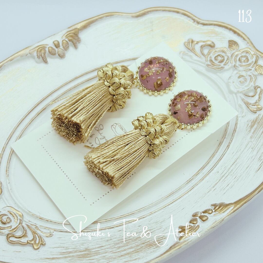淡い薔薇色に金箔がきらめく、クラシカルなイヤリング。